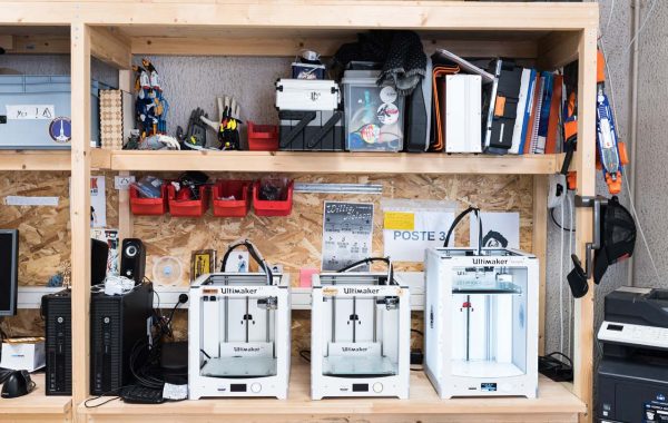 Dans l’atelier de My Human Kit, trois imprimantes 3D, indispensables à tout fab lab. © Constance Decorde