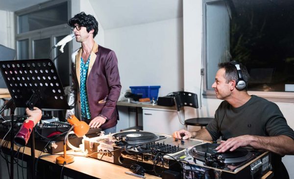 Nicolas, fondateur de My Human Kit, mais aussi animateur de soirée on fire, avec son spectacle One Manchot. © Constance Decorde