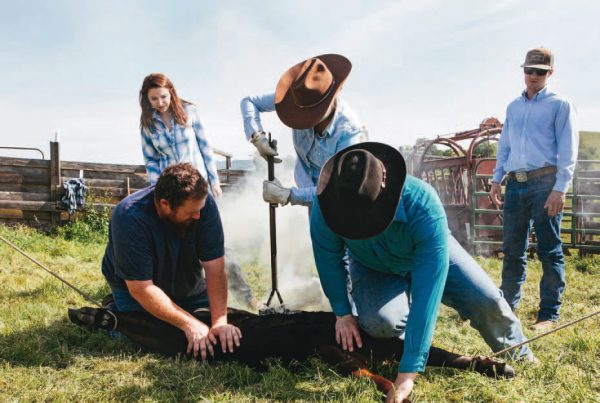 C’est jour de marquage des veaux au Three Bar Ranch, la ferme de Diane Bohna située dans la bourgade de Raymond, à une quarantaine de kilomètres à l’ouest de la Sierra Nevada. Les temps sont durs pour les petits ranchers californiens. L’exploitation de Diane produit 137 tonnes de viande par an. Les grandes fermes d’engraissement voisines, elles, en vendent 70 000 tonnes. © Eugénie Baccot